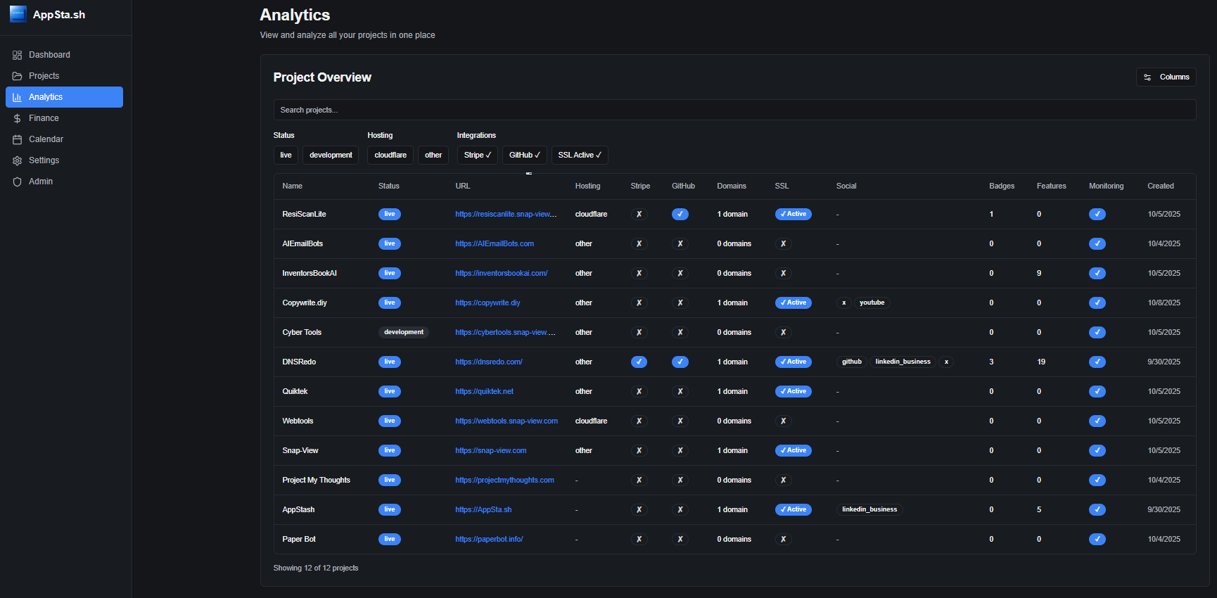 AppSta.sh - All-in-One Indie Dev Dashboard