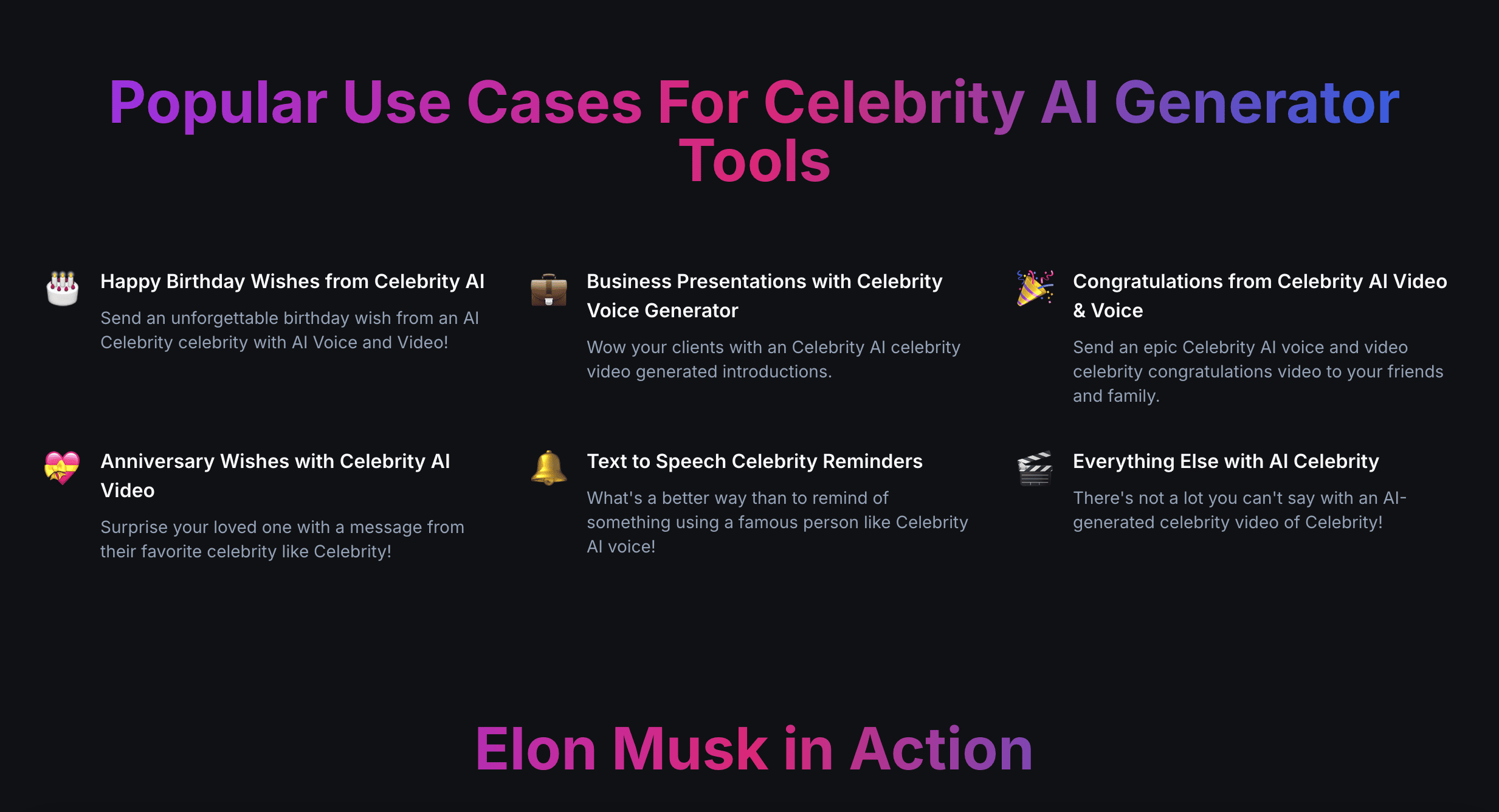 CelebrityAI.club – Generate hyper-realistic AI videos & voiceovers with any celebrity or custom avatar in minutes. Upload a face, type your script, and receive 4K lip-synced footage plus cloned voice; no filming, no licensing headaches. Features: 900+ licensed likenesses, auto slang & tone tuning, multi-language (40+), batch API, GDPR/CCPA compliance, built-in “AI-Generated” watermark, and full commercial rights. Used for ads, UGC, e-learning, birthday greetings, and viral social posts. Free plan: 3 watermarked 720p renders/week. Pro: $19/mo—unlimited 4K, priority GPU, brand kits, custom voice training, and live-chat support. Enterprise: SLA, SSO, on-prem deploy, custom voices & talent contracts. 99.2 % user satisfaction, zero data-leak record, SOC-2 audit yearly.