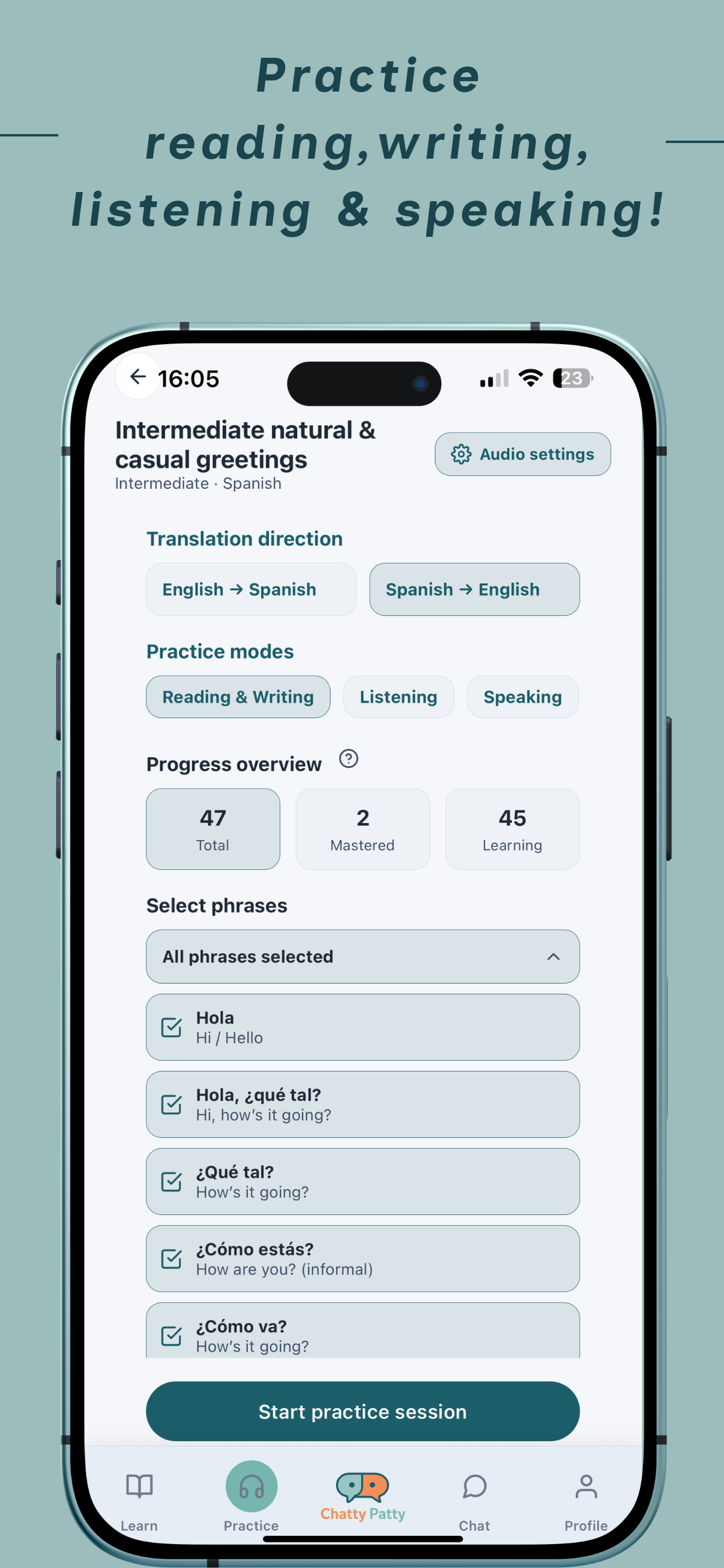 Chattypatty is your AI-powered language buddy designed to help you practice and improve your language skills through interactive conversations. You can engage in realistic dialogues to build confidence, enhance your vocabulary, and master new languages at your own pace. This tool helps you bridge the gap between learning and speaking by providing a supportive environment for daily practice.