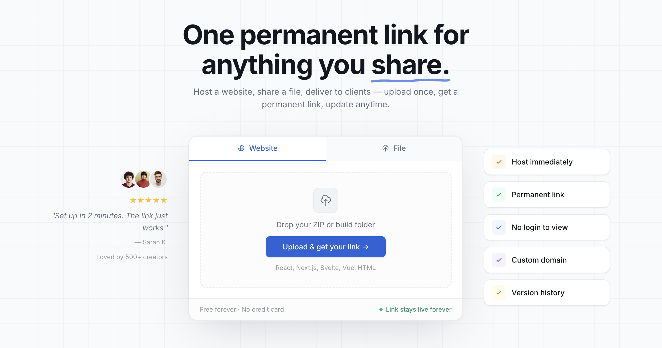 Manage artifact lifecycles with permanent links and version control. Track engagement with integrated analytics. Pricing starts at $4 for creators and developers.