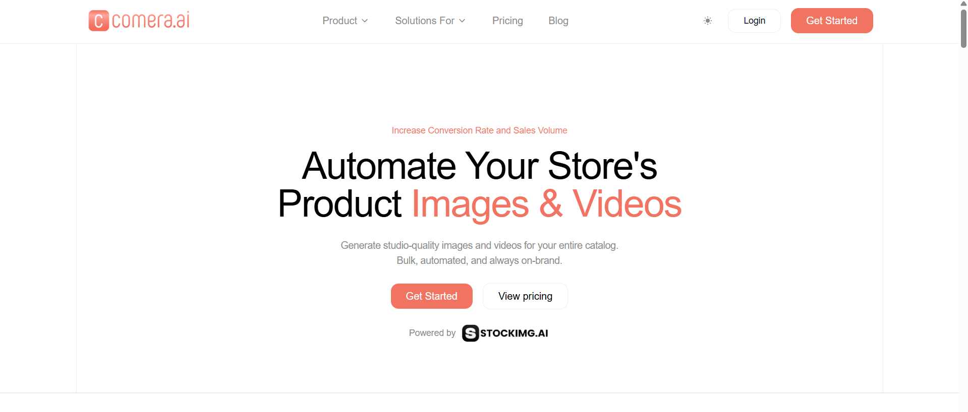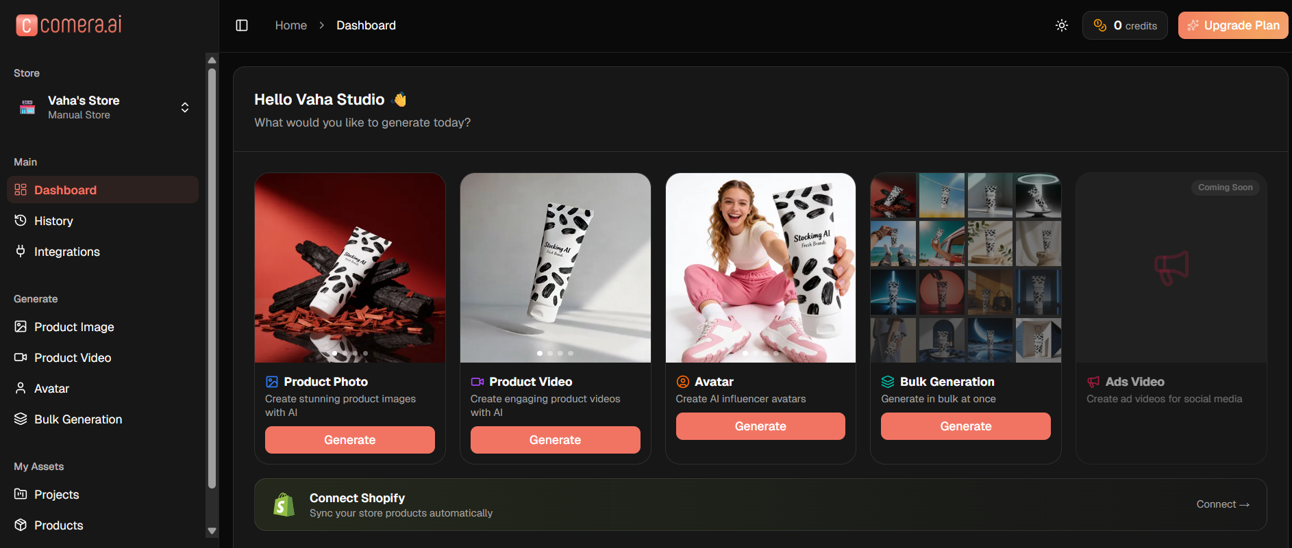Generate automated studio-quality product images and videos for Shopify catalogs. Perfect for small businesses and marketers looking to scale visual content.