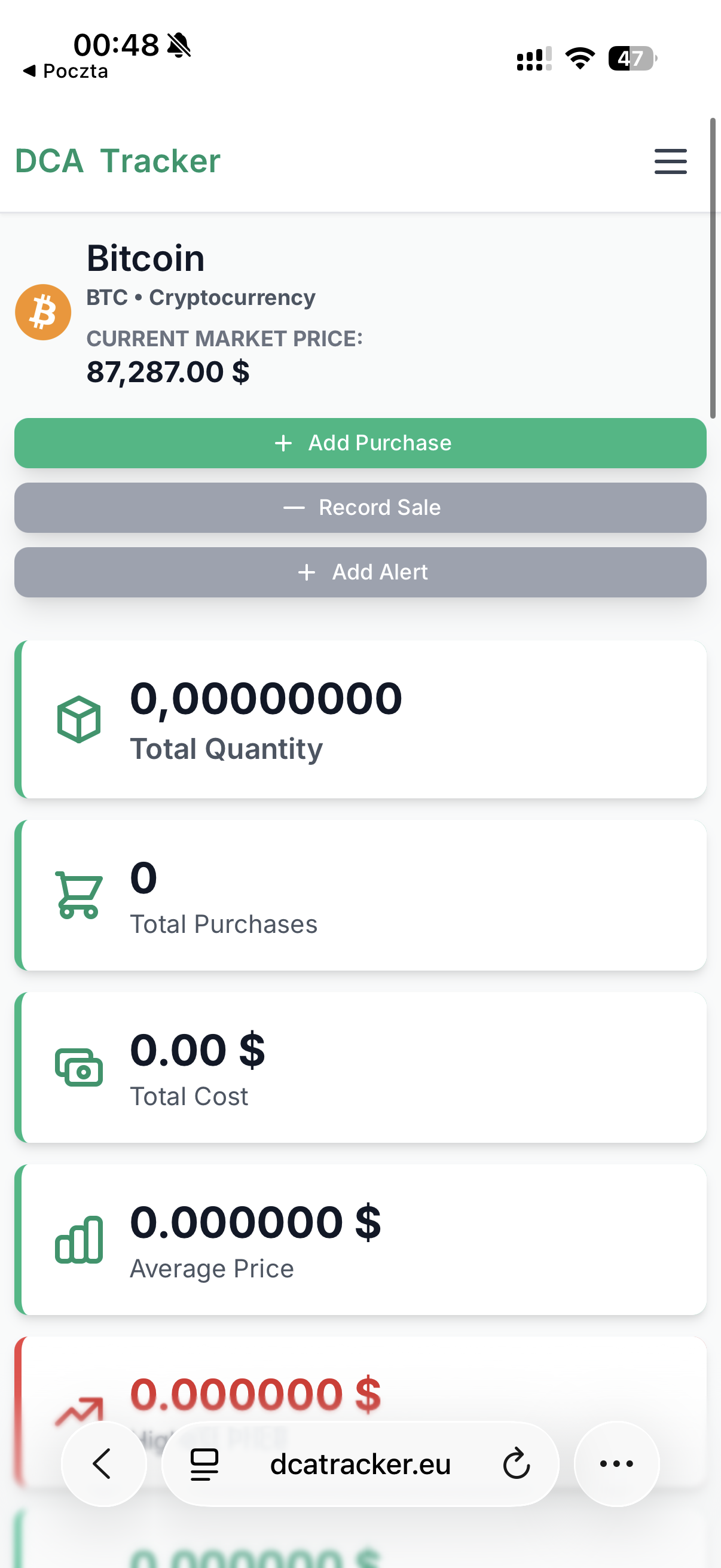 DCA Tracker allows you to track your dollar-cost averaging strategy, recurring investments, and portfolios across crypto and other assets. This simple, clear, and user-focused tool helps you maintain a precise overview of your investment performance over time for better financial management.