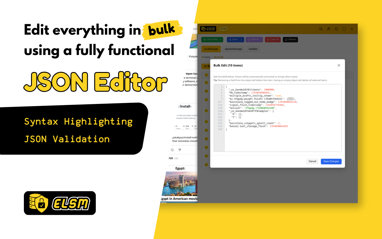 Manage your browser storage effortlessly with our extension in both Chrome and Firefox. You can view, edit, and organize localStorage, sessionStorage, Cookies and IndexedDB with an intuitive interface. This tool helps you maintain control over your browser's local data storage, providing a clear and easy-to-use solution for common development and debugging tasks. You can efficiently inspect and modify key-value pairs, making it simpler to test web applications and manage user data directly within your browser.