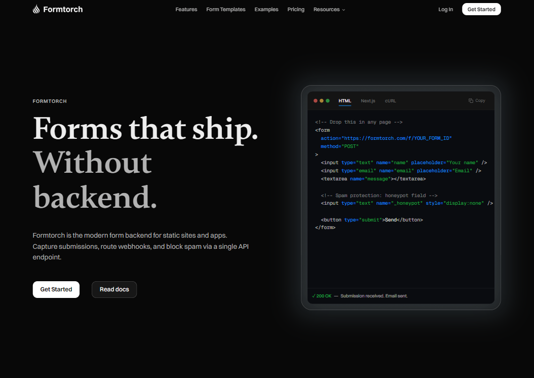 Formtorch - Form Backend for Static Sites
