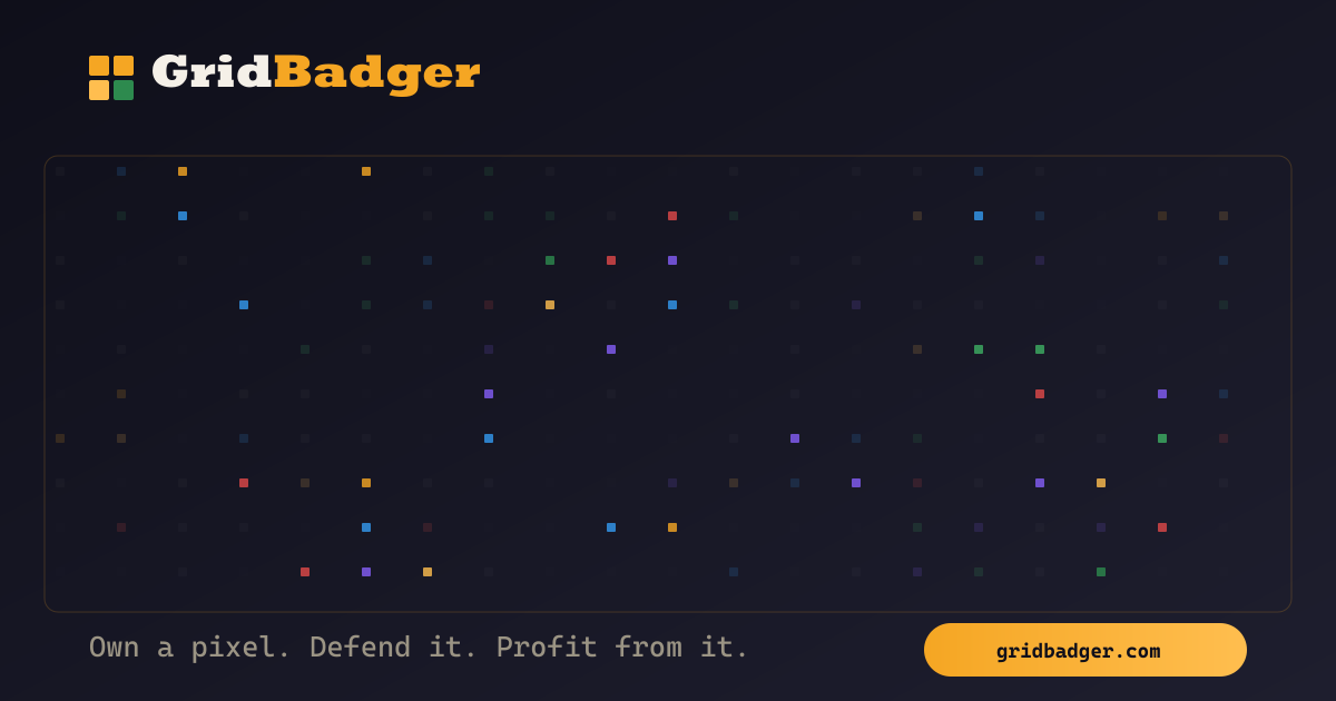 GridBadger offers a unique digital ecosystem where you can own, defend, and profit from individual pixels. This platform allows you to participate in a competitive digital space, securing your territory while exploring monetization opportunities through pixel ownership.