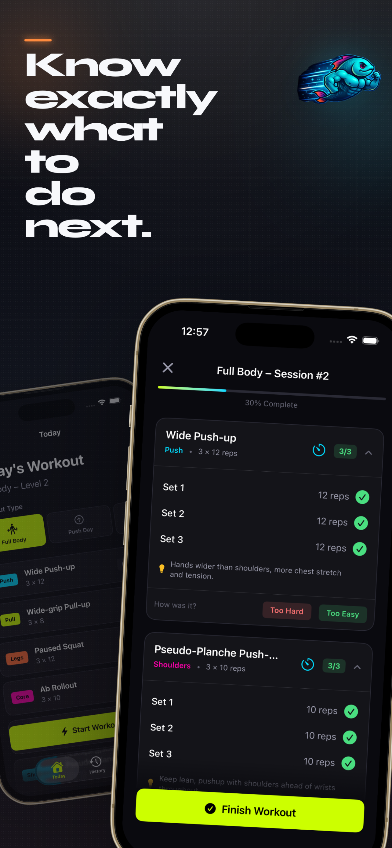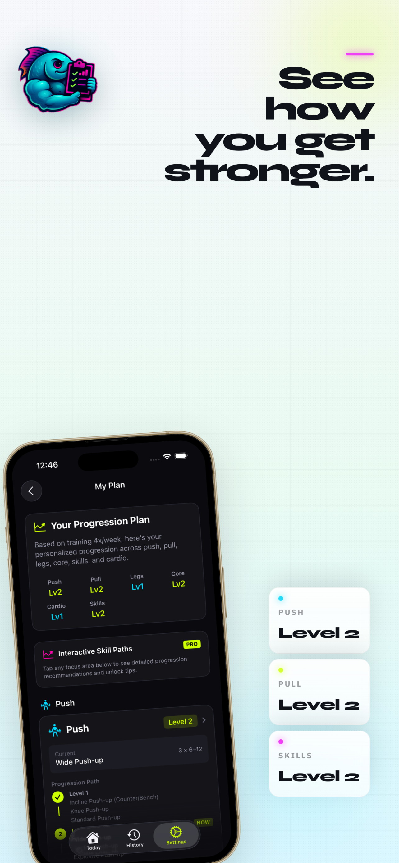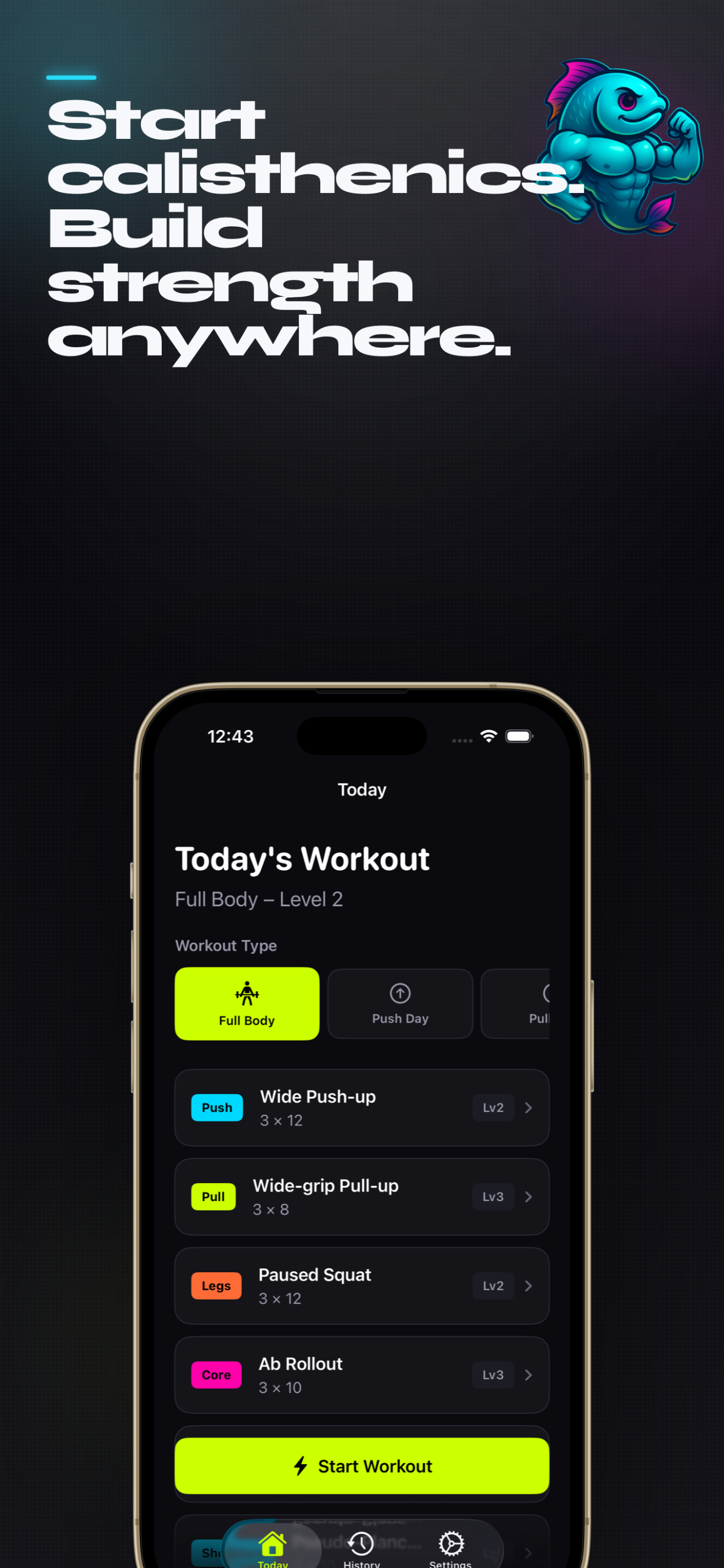 Build strength and consistency with guided bodyweight workouts. Start your calisthenics journey on iPhone with placement tests and progressive skill paths.