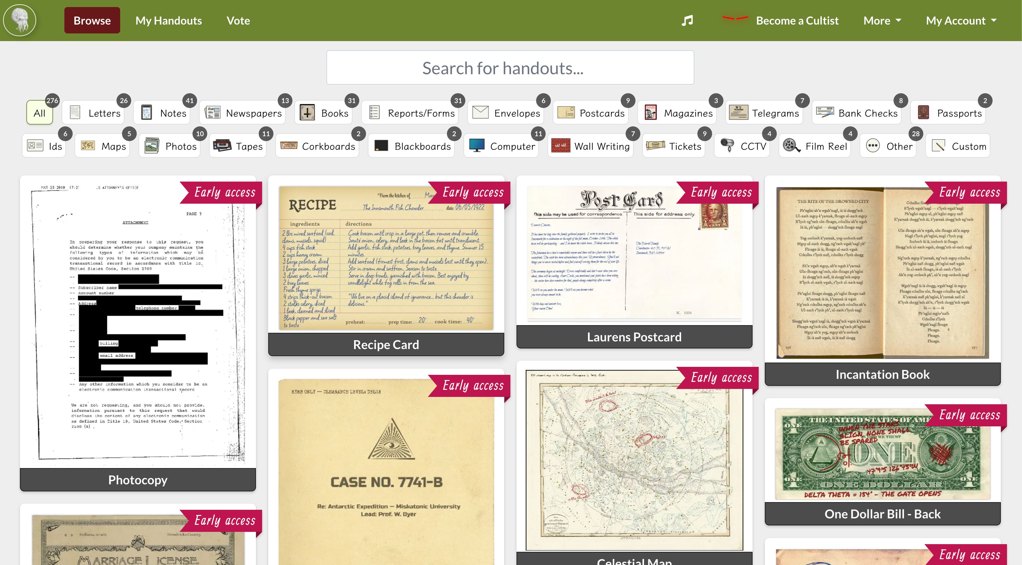 You can create fast and easy handouts and props for your tabletop RPG sessions. This tool allows you to discover a massive collection of handouts to help you get inspired for your next game. You can use the generator to design custom props and share the finished handouts directly with your gaming group to enhance the immersion of your tabletop experience.