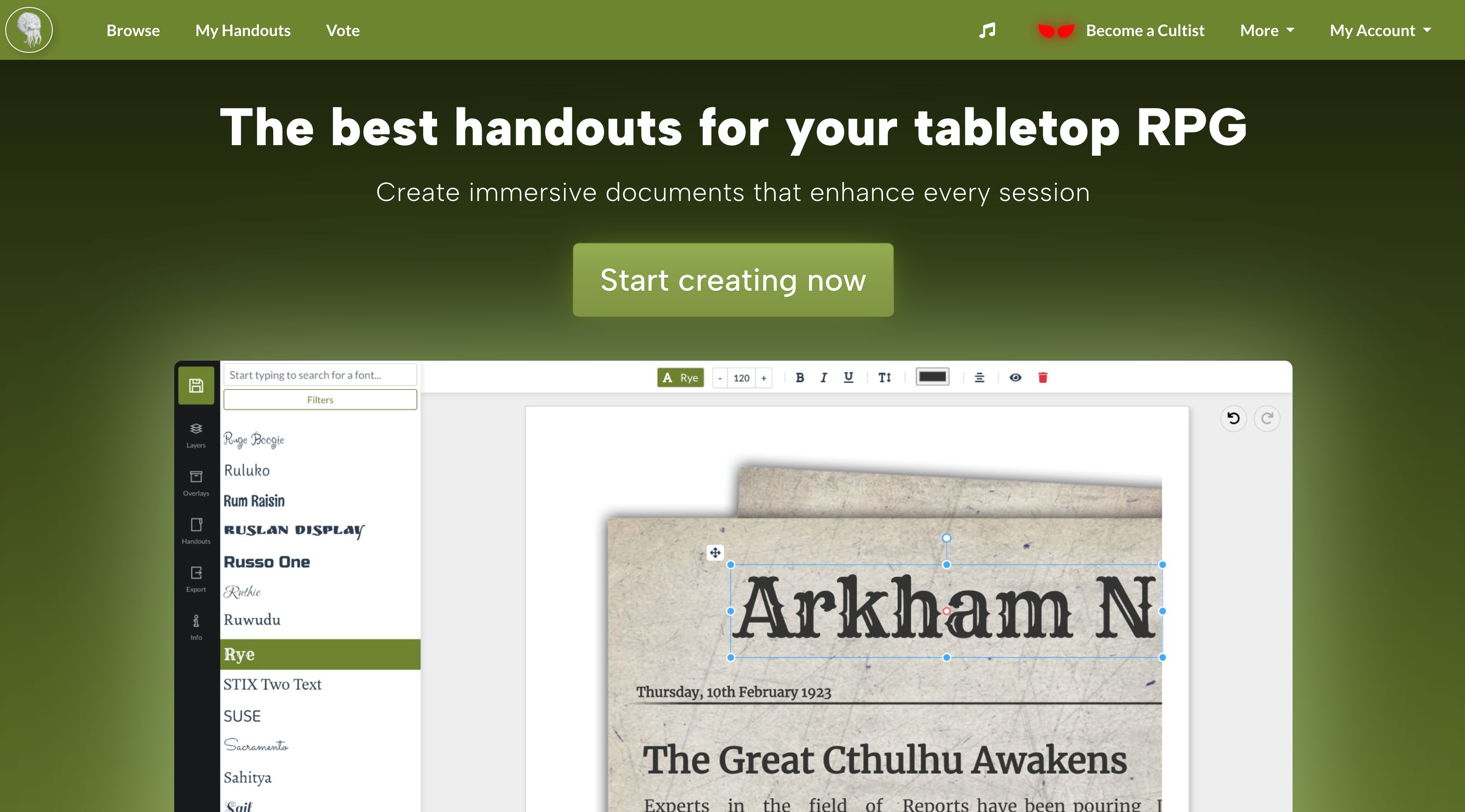 Handout Generator - Create Tabletop RPG Props