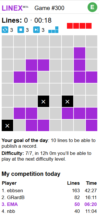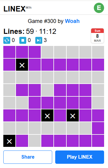 Solve daily puzzles by drawing pieces on a dynamic 8x8 grid. Compete on global leaderboards and manage limited lifelines. Free web-based mobile gaming.