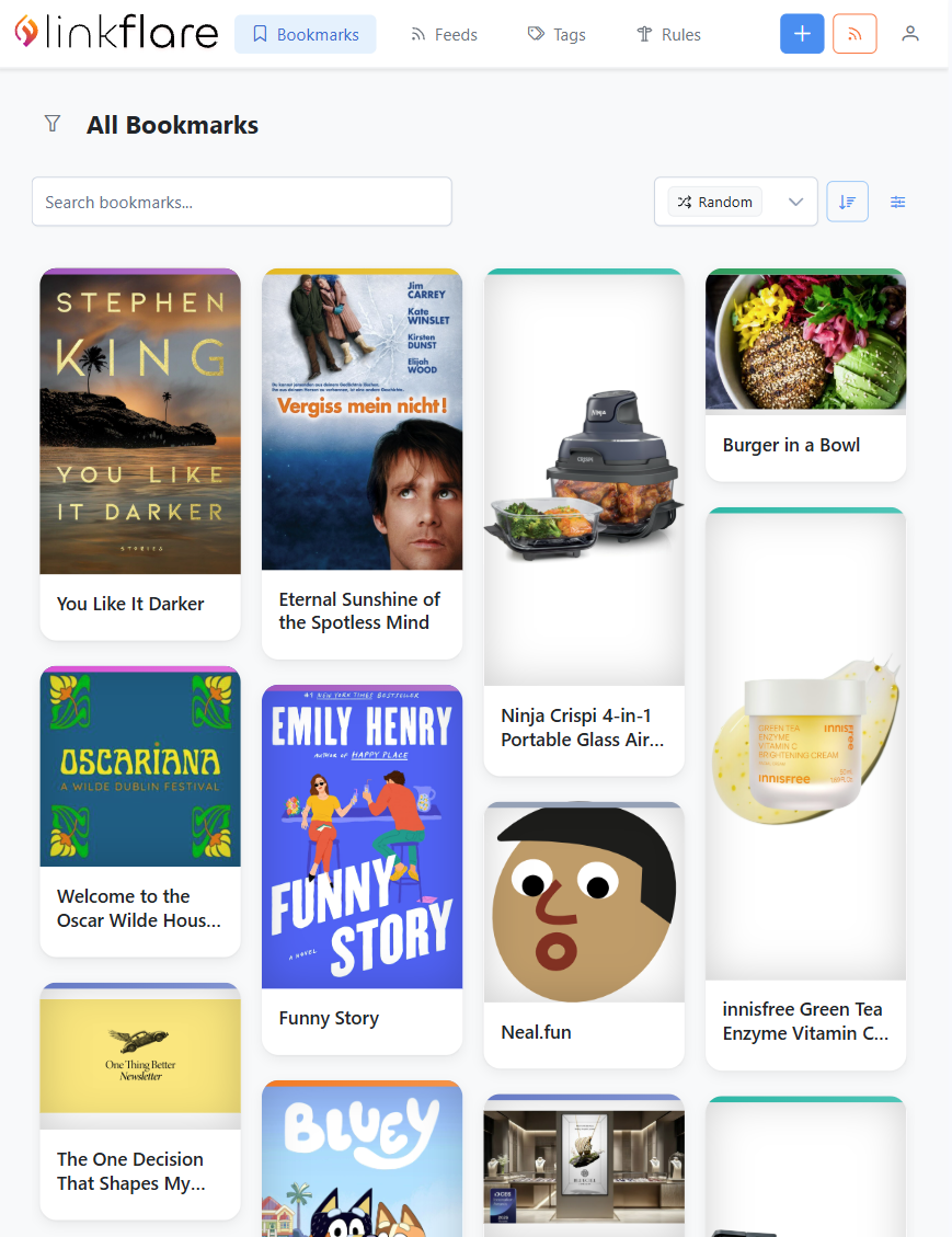 Linkflare is the universal bookmark manager designed to help you save, organize, and remember what matters most. You can use this all-in-one solution to manage diverse content types like books, movies, recipes, and more. It helps ensure that you never lose track of important links again by providing a centralized space for your digital library.