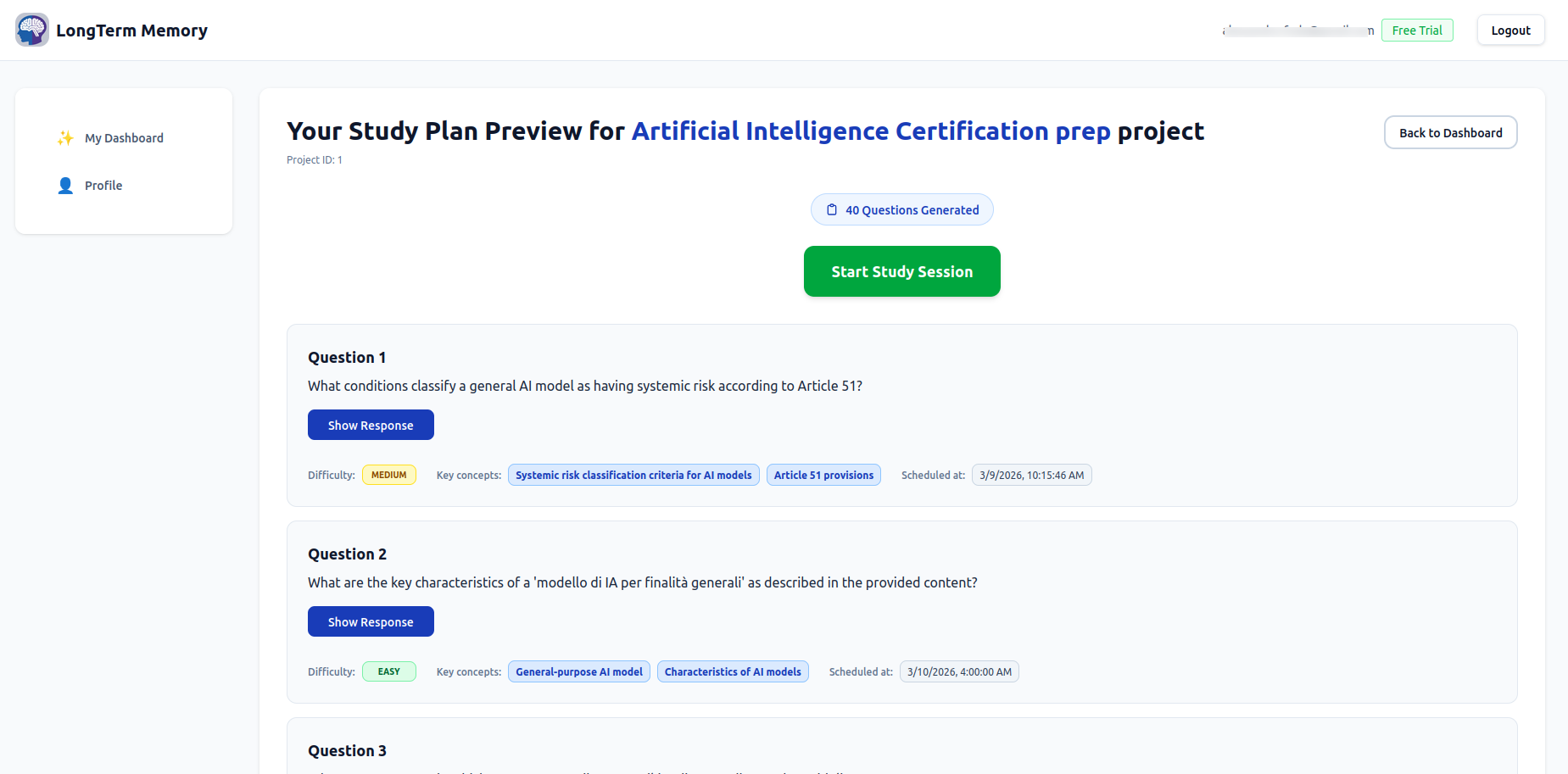 LongTerMemory - AI Spaced Repetition Study Plans