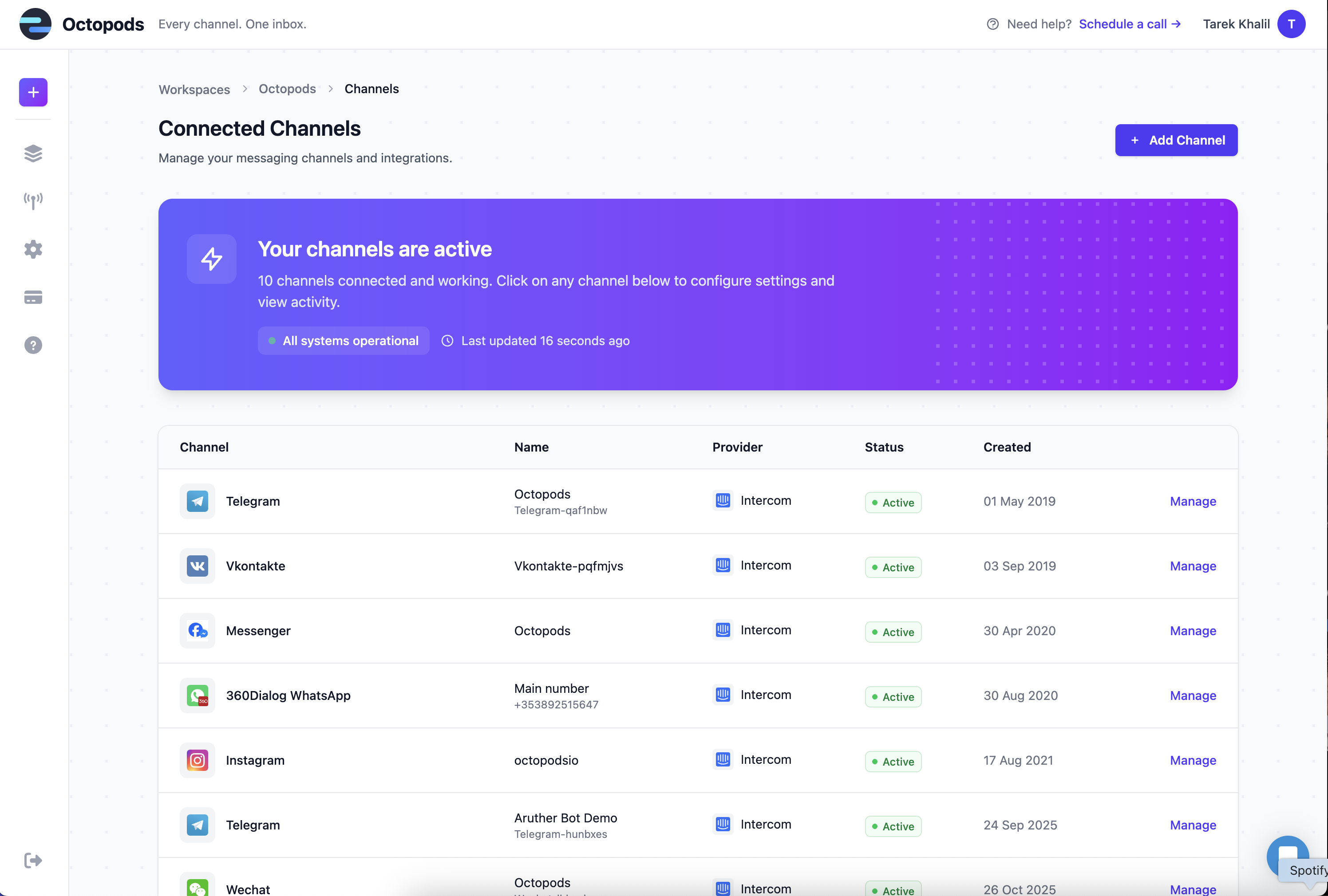 Octopods connects 18+ messaging channels — WhatsApp, Telegram, Instagram, LINE, Viber, SMS, WeChat & more — directly to your Intercom or HubSpot inbox. Unlike basic integrations, Octopods creates native conversations inside Intercom and HubSpot. Your team can use tags, saved replies, assignment rules, workflows, and AI features exactly as they would with any other conversation — no context switching required. Key features include rich media support (images, video, audio, documents, GIFs), proactive outbound messaging via templates, automatic contact matching to prevent duplicates, and Custom Data Attributes for filtering and segmentation. Built for support, sales, and ops teams that need to reach customers where they are. Setup takes minutes, no conversation data is retained, and official Intercom and HubSpot app partners.