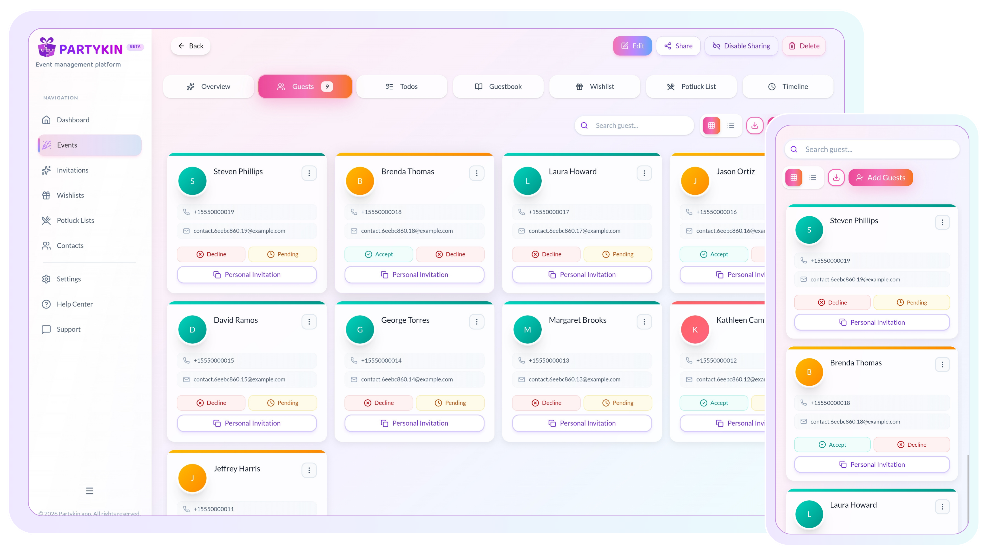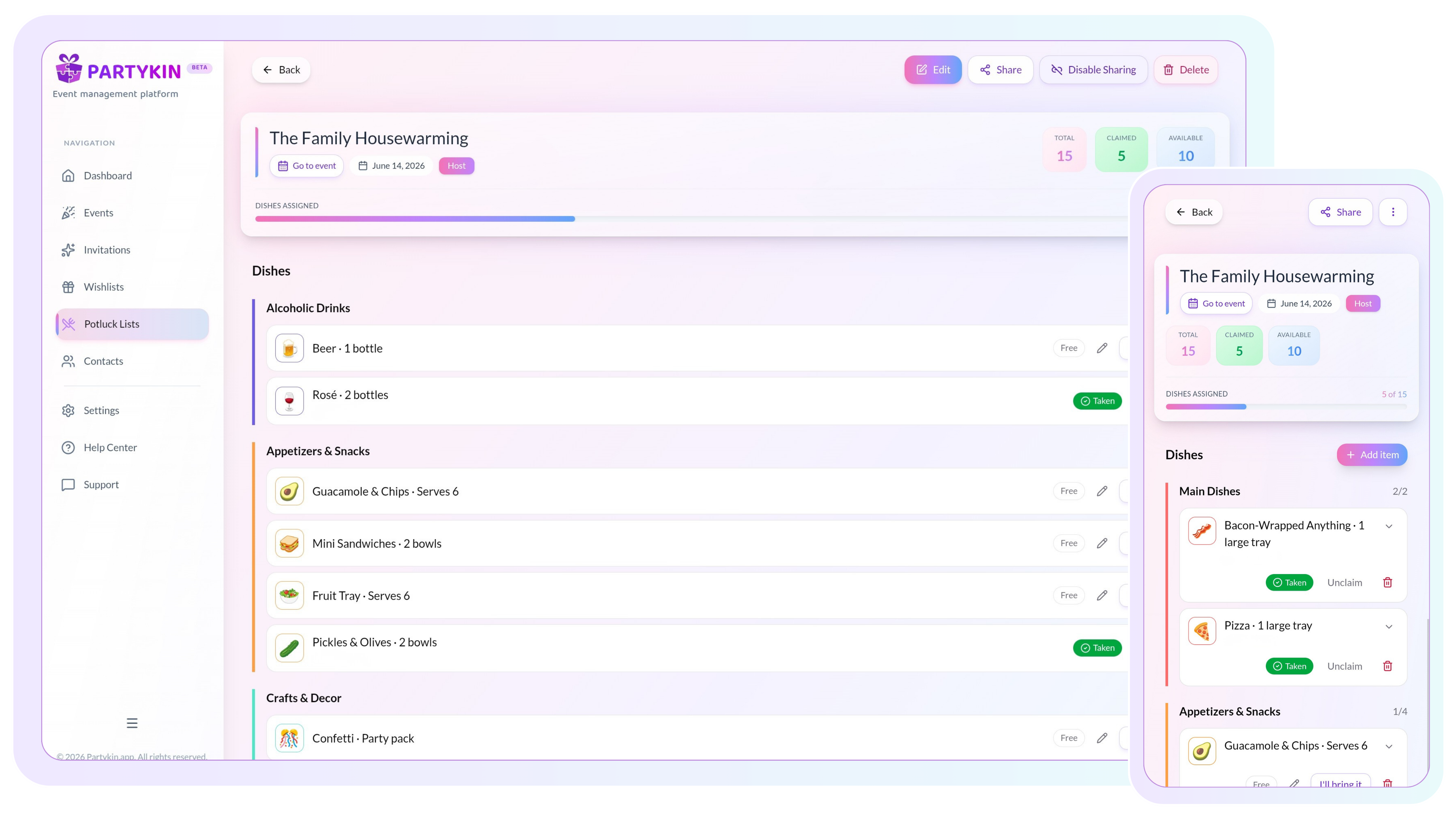 Partykin is a free online event planning tool designed to simplify group gatherings. You can plan birthdays, anniversaries, and other social events using a single shared link. The platform allows you to send digital invites, track RSVPs in real-time, and organize event essentials like wishlists or potluck contributions. Whether you are hosting a small dinner or a large group celebration, Partykin helps you coordinate all the details in one centralized location.