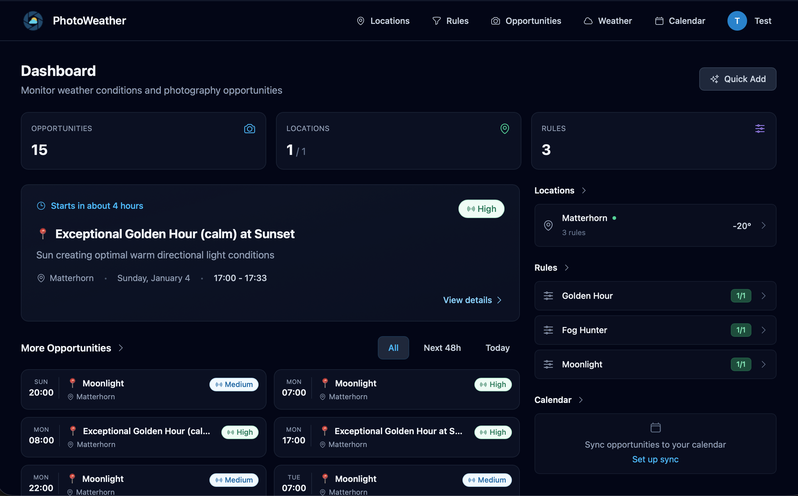 Automate your shoot planning with custom alerts for fog, aurora, and golden hour. Ideal for content creators and freelancers on a web-based platform.
