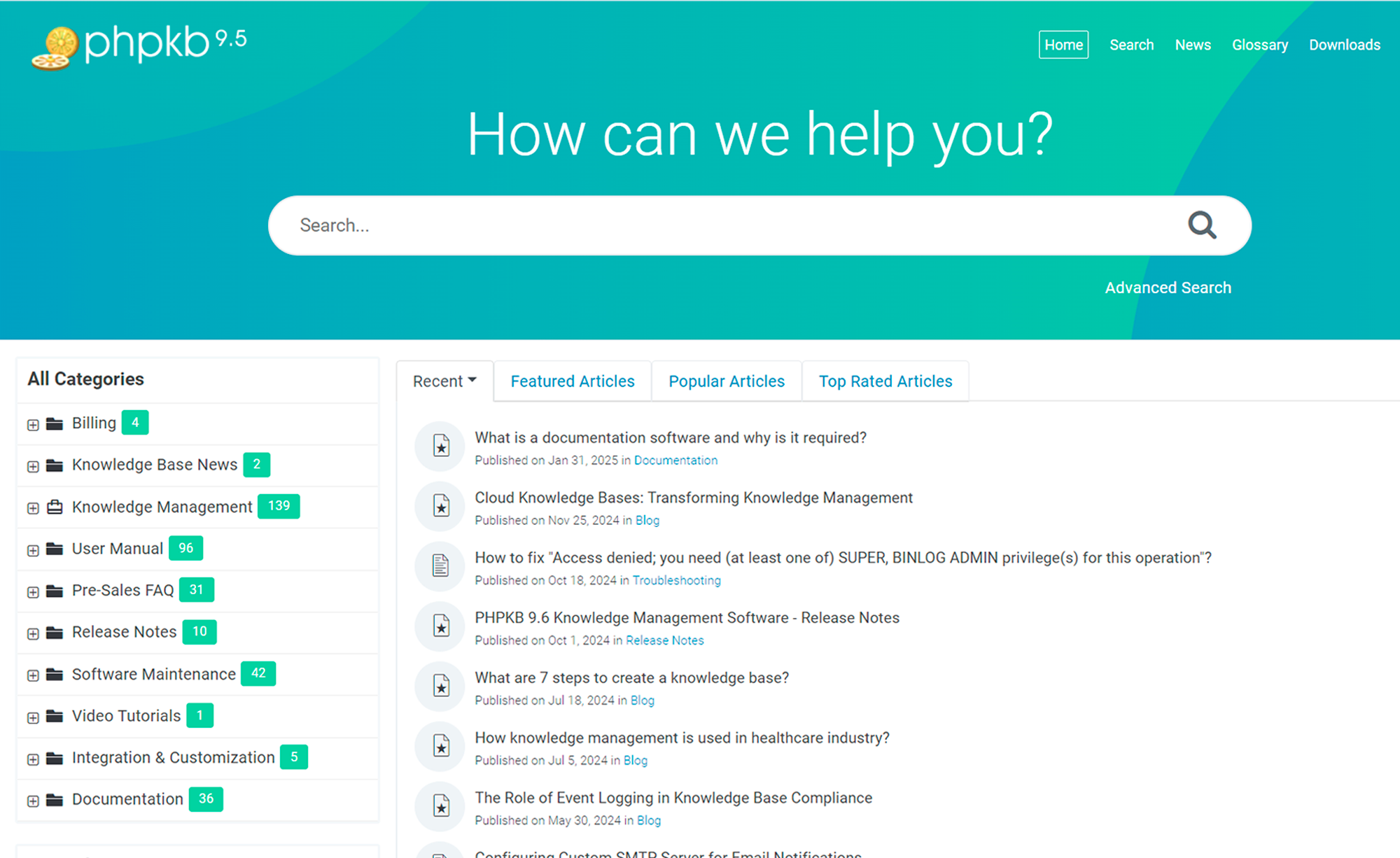 Organize your knowledge base with advanced search and user permissions. Ideal for enterprises and small businesses managing customer support documentation.