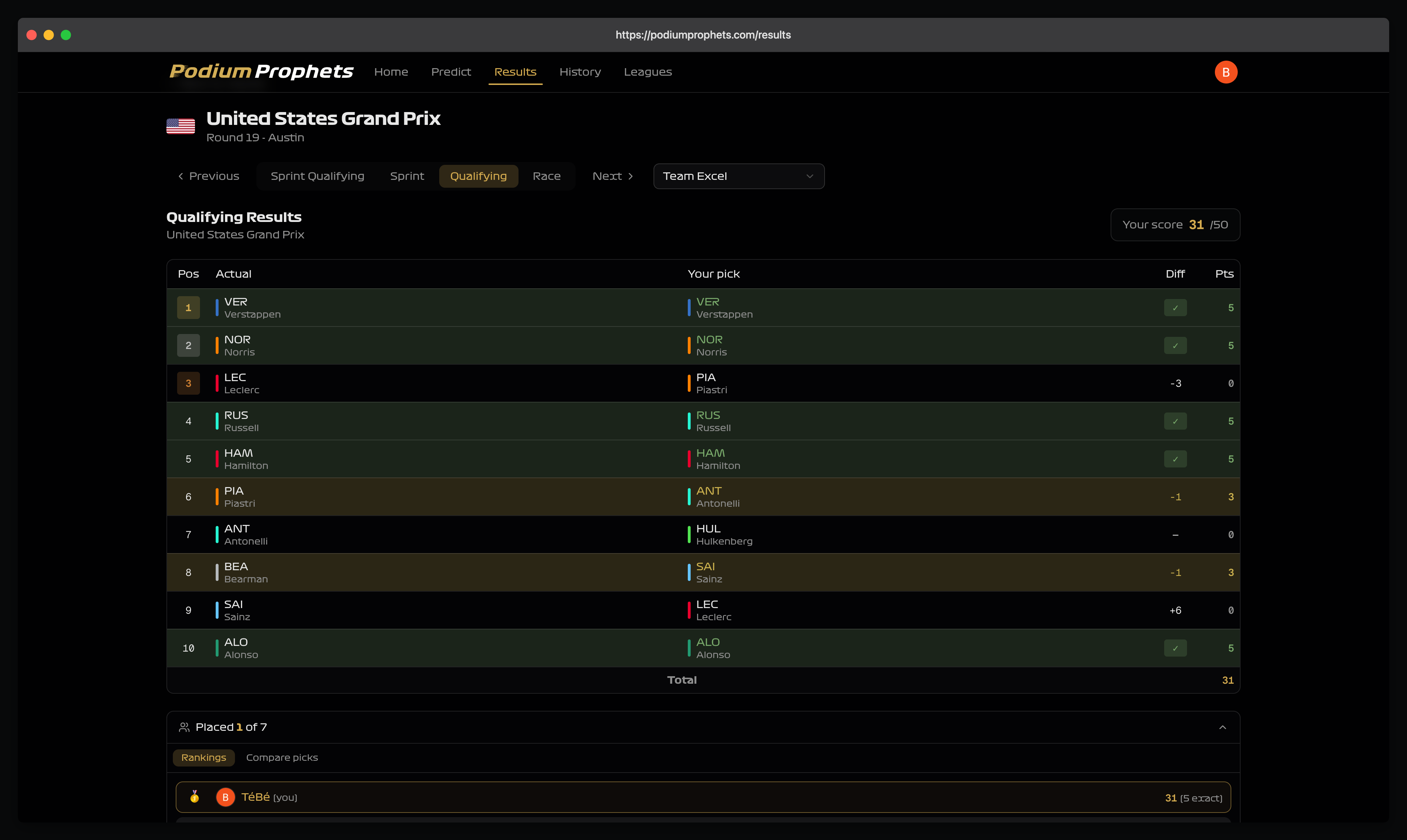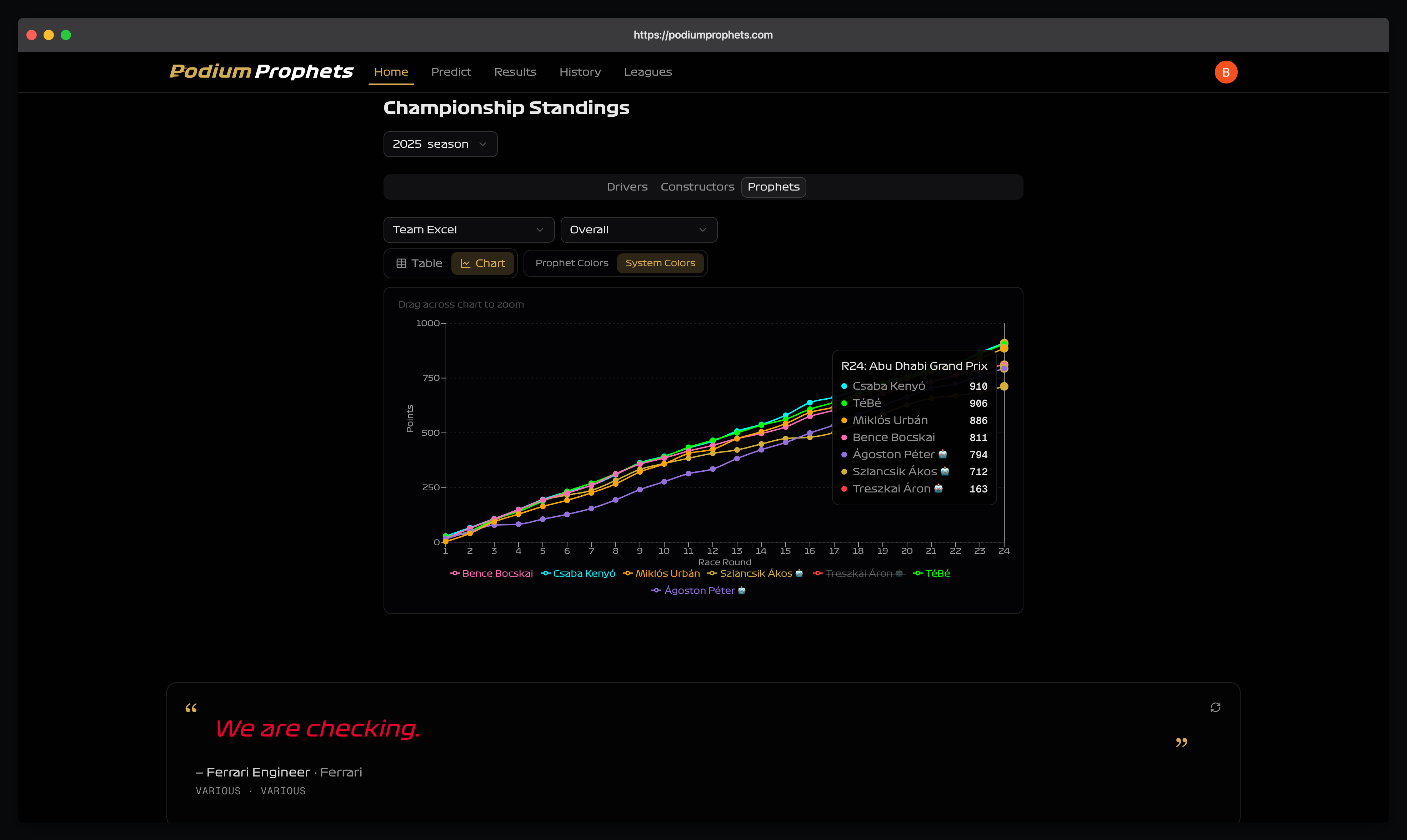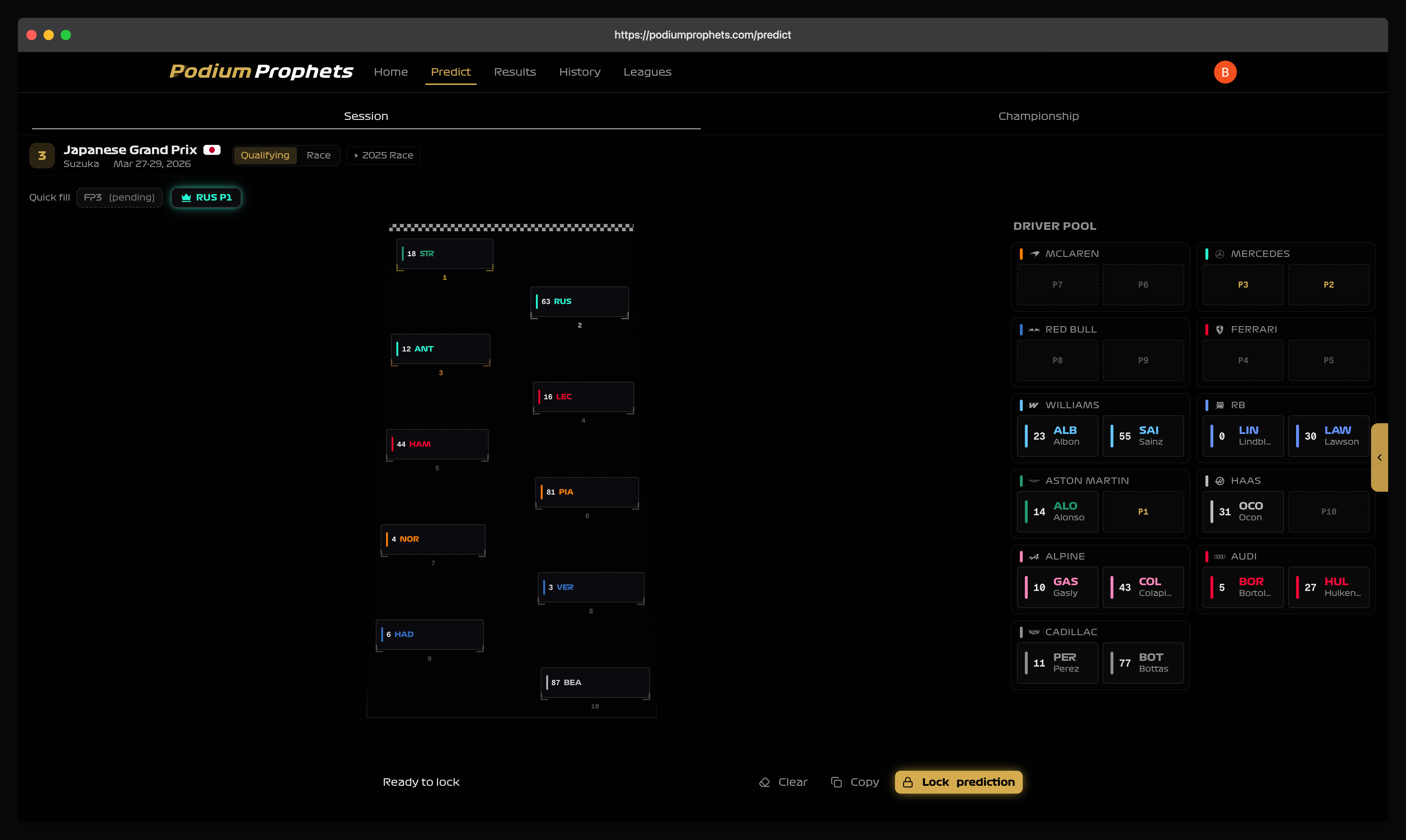 Host automated F1 prediction leagues with built-in race pace analysis. Perfect for community managers looking for free, data-driven racing games on the web.