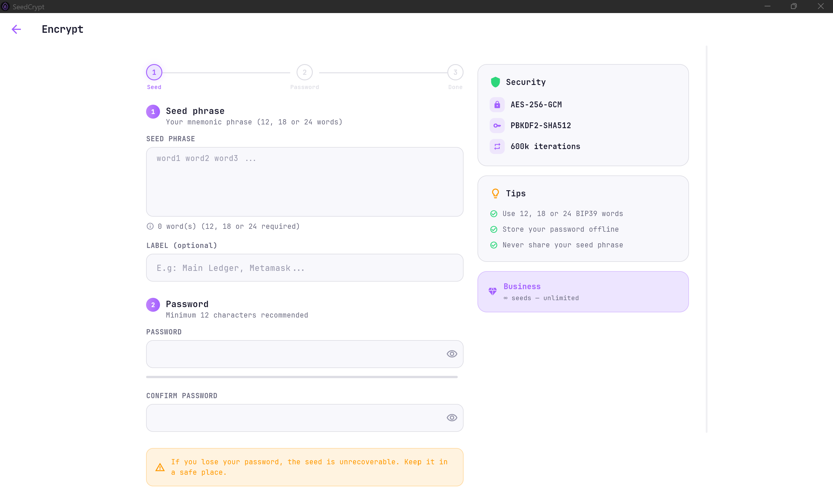 SeedCrypt - Encrypt Seed Phrases Offline