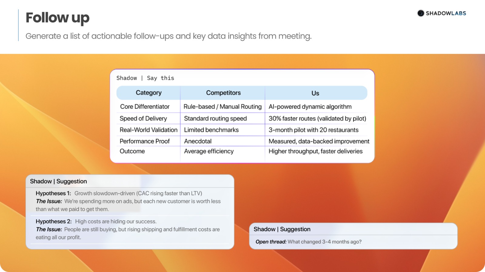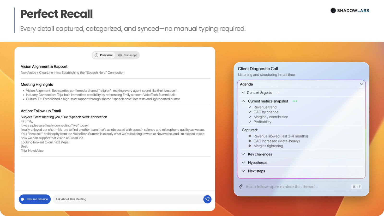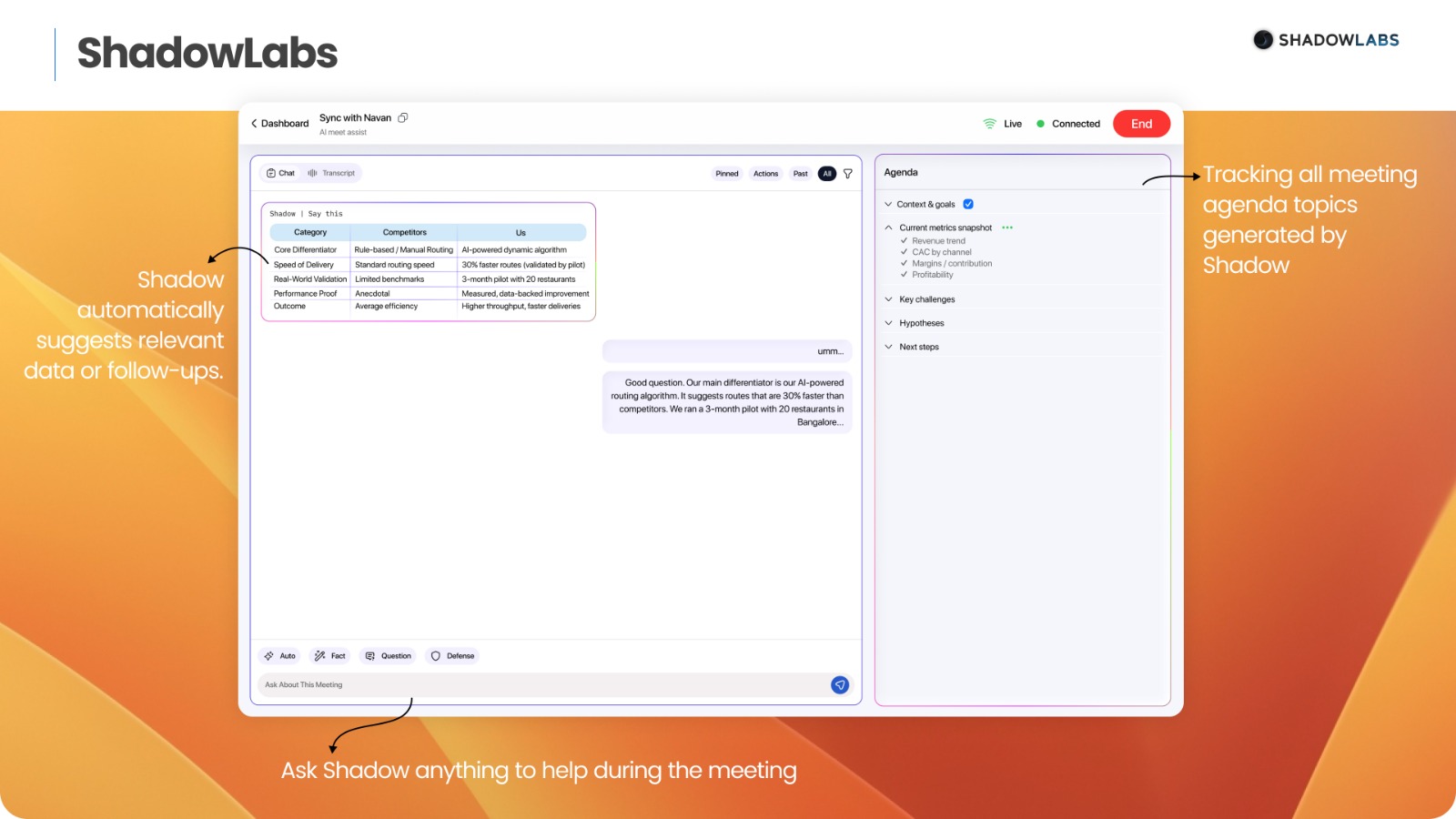 Shadow is your smart meeting assistant, that helps you doninstant fact check and fetch information from your docs instantly