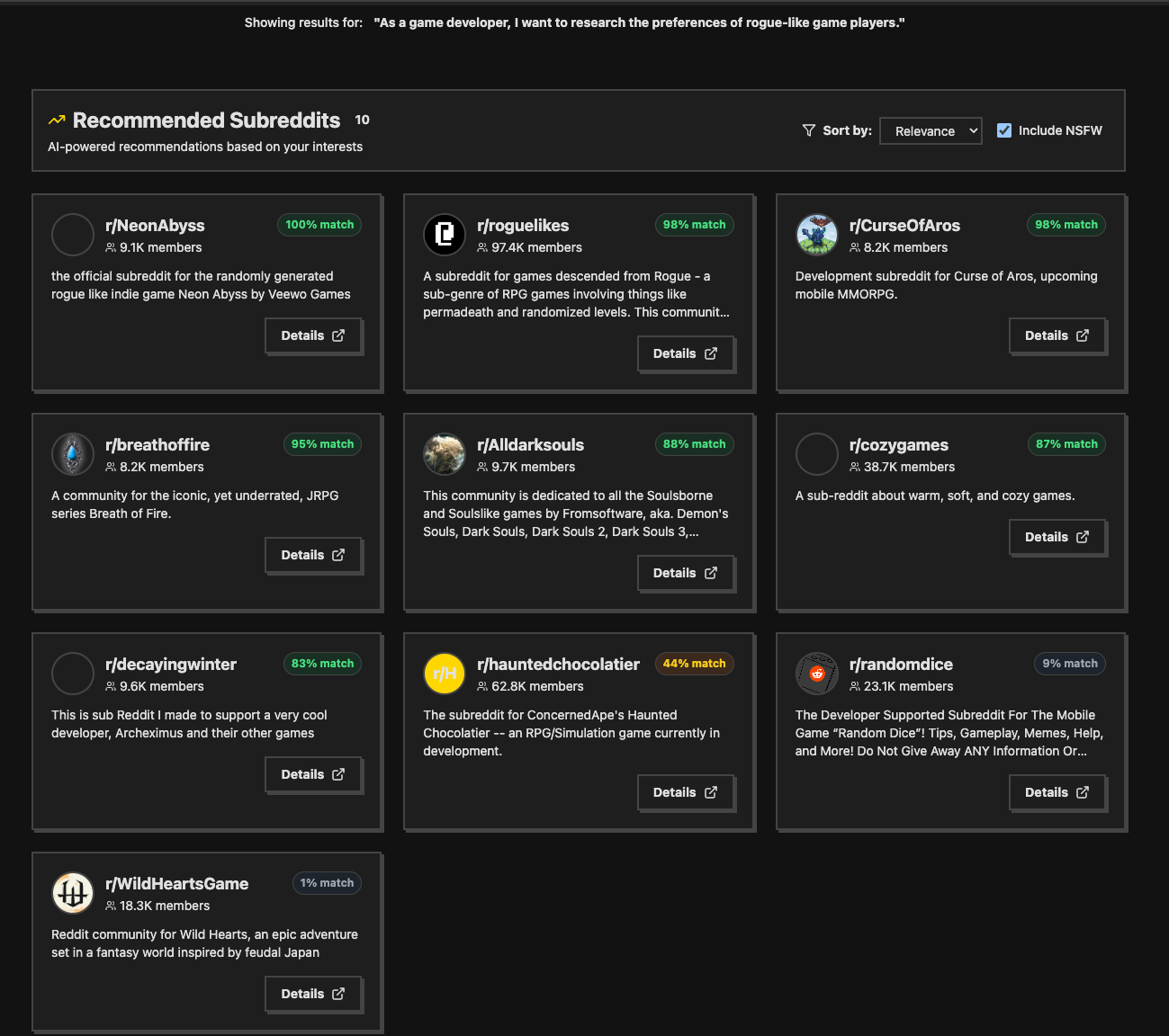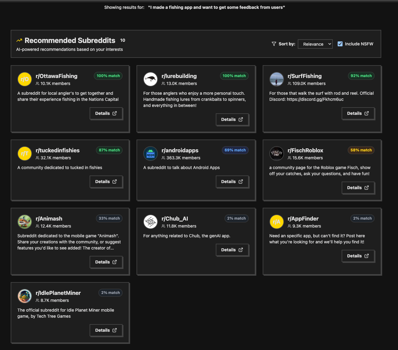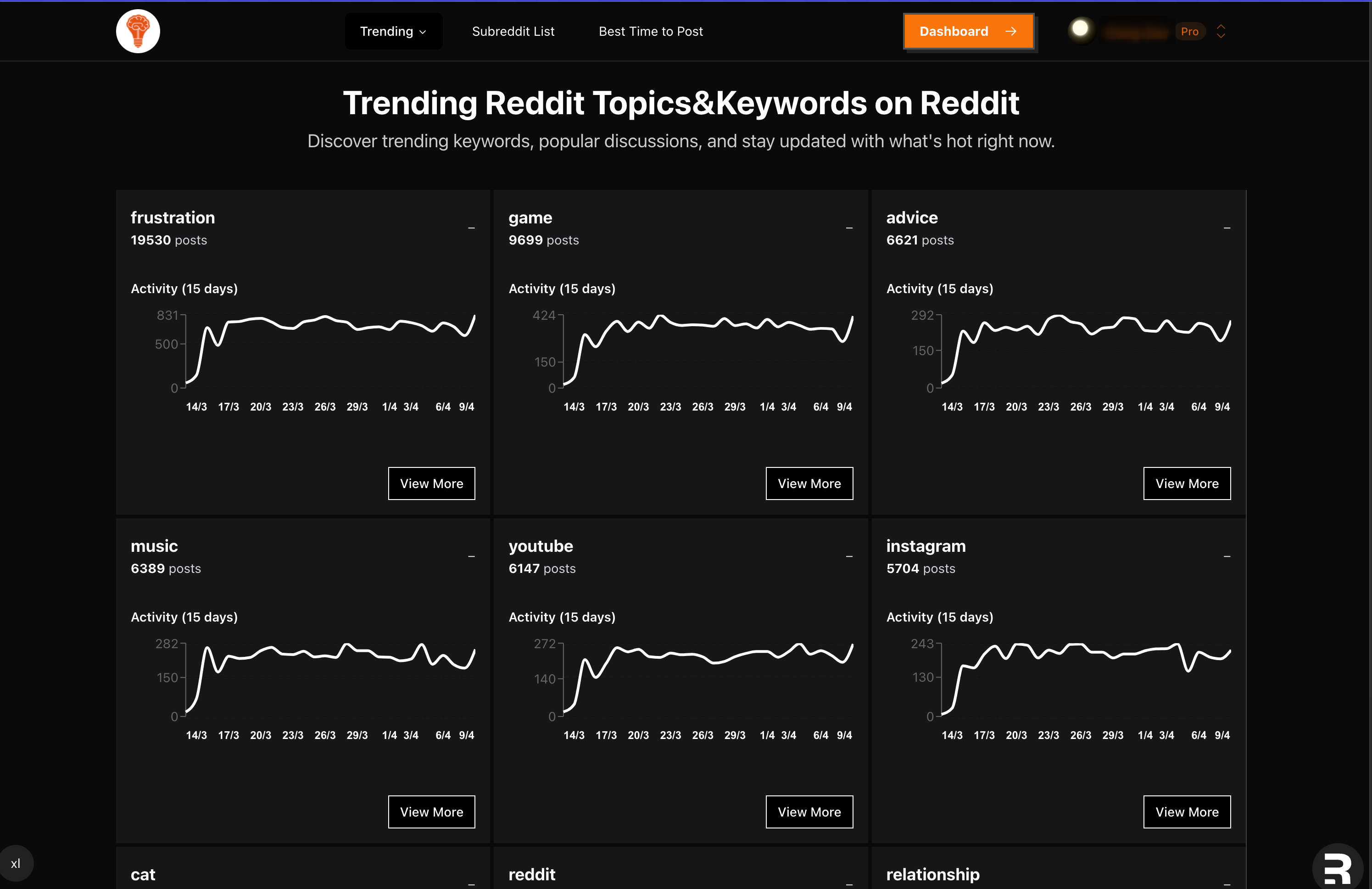 Help people discover the pain points and find the real user . - Find the most relevant subreddits. - Trending content - Keywords Tracking