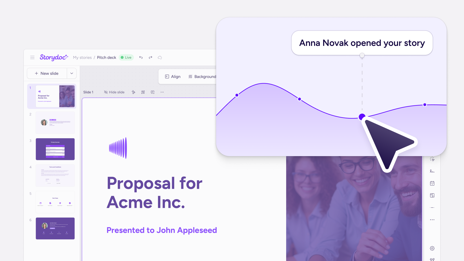 Create interactive sales proposals and pitch decks with built-in engagement tracking. Ideal for enterprise sales teams and marketers on the web.