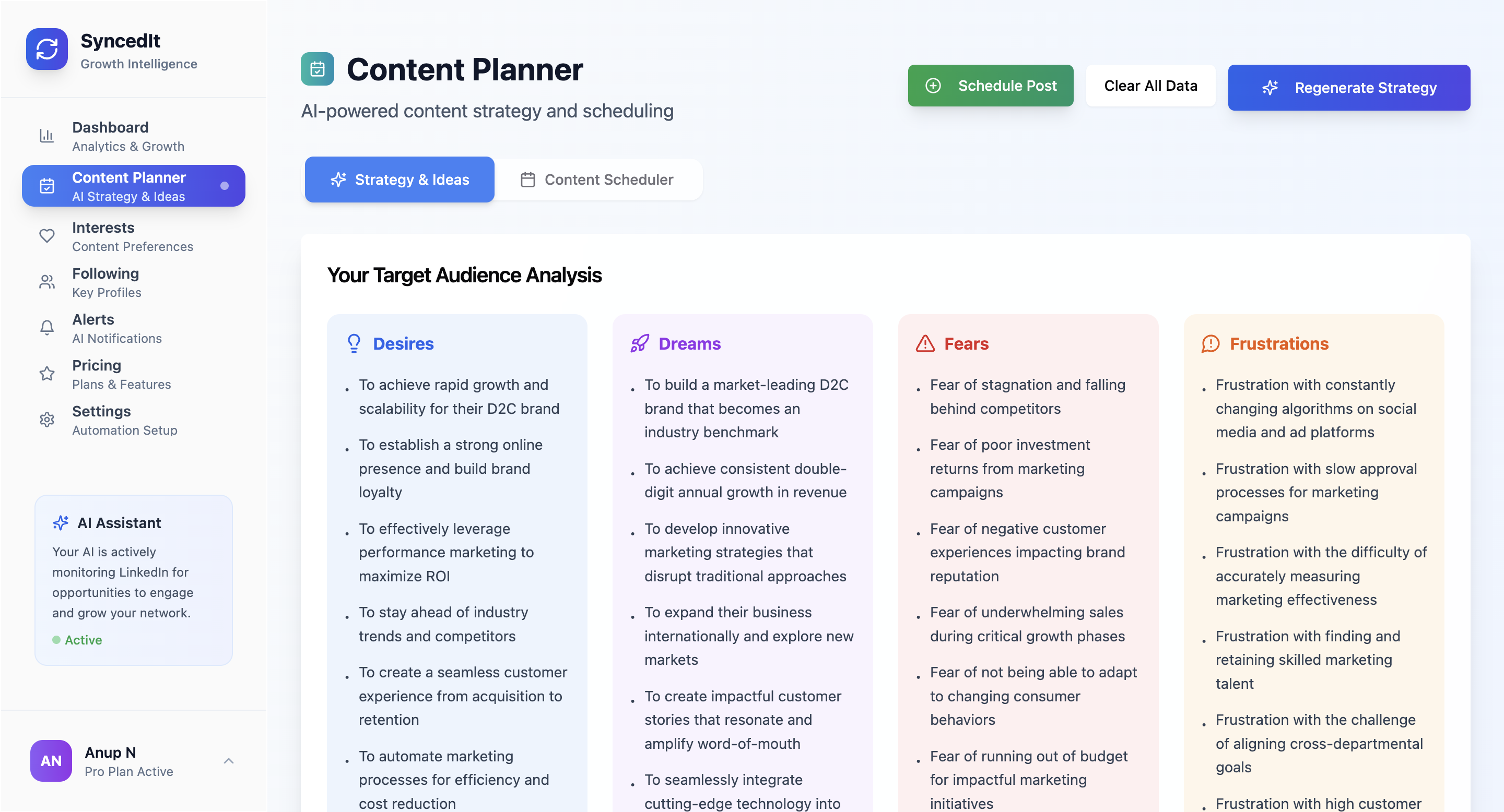 Optimize your LinkedIn presence with AI post generation, profile tracking, and content scheduling. Ideal for founders and marketers on the web.