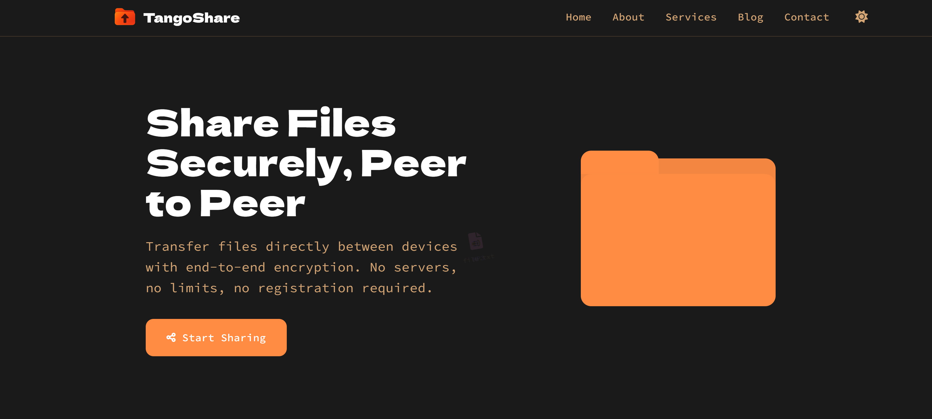 TangoShare provides a robust platform for secure peer-to-peer file sharing. You can exchange sensitive information and large files directly with others, confident that your data is protected. This service prioritizes privacy and security, offering end-to-end encryption to ensure that only the intended recipients can access your shared content. Our platform eliminates middlemen, allowing direct connections between users for efficient and private data transfer. Whether you're sharing documents, media, or other digital assets, TangoShare ensures that your communications remain confidential and impervious to unauthorized access. Experience a streamlined and worry-free file sharing process.