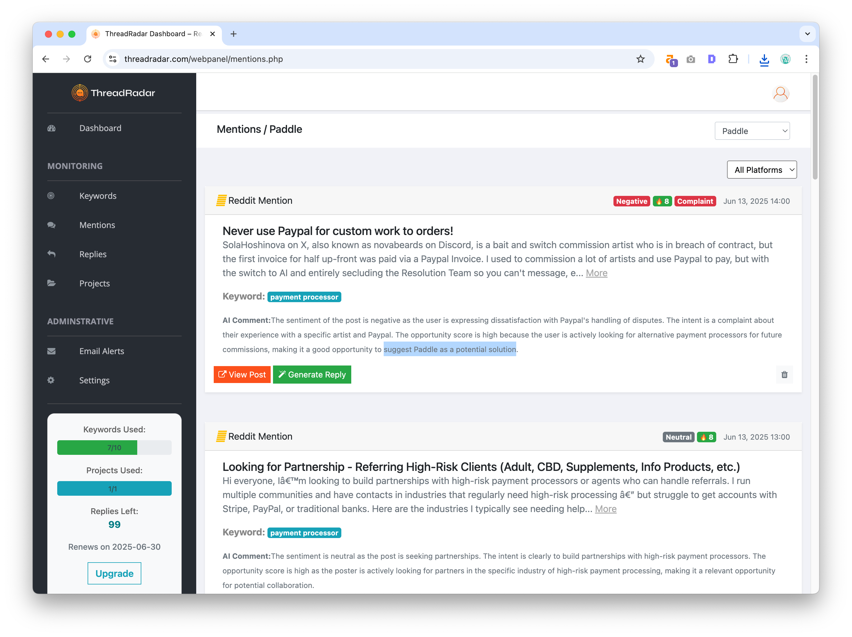 ThreadRadar - Get Leads From Online Forums