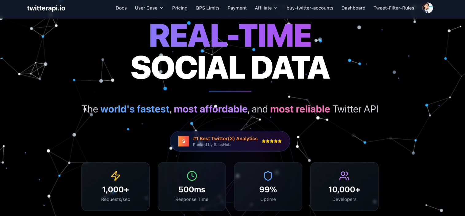 TwitterAPI.io provides comprehensive access to all Twitter discussions, both historical and ongoing. We offer the complete tweet archive alongside a live stream, all accessible via straightforward REST endpoints. These endpoints also facilitate secure operations like posting, liking, retweeting, and following. We ensure rapid data delivery and near-perfect uptime (>99.9%), powered by a CDN for optimal performance. Our pricing structure is adaptable and budget-friendly, beginning with a free tier and scaling in line with your needs. Developers will appreciate our interactive Swagger playground, readily available code examples, and swift, helpful support. Perfect for crafting trading bots, generating AI training data, conducting sentiment analysis, and building research tools, TwitterAPI.io eliminates cost and limitation hurdles, empowering innovation without constraints.