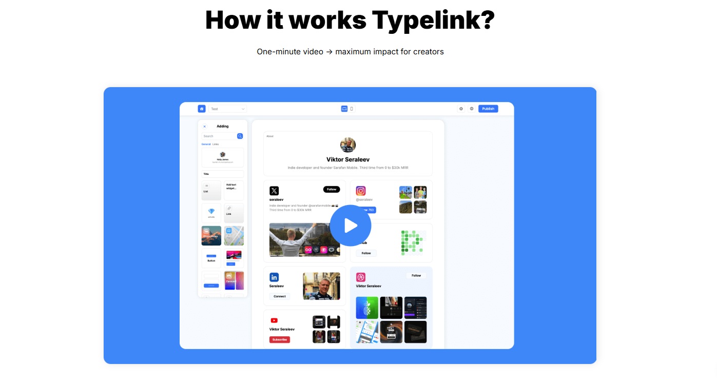 Create your link in bio page in minutes with Typelink — a modern Linktree alternative for creators and brands. You can design, customize, and share all your links in one place. It's free to start using this tool.