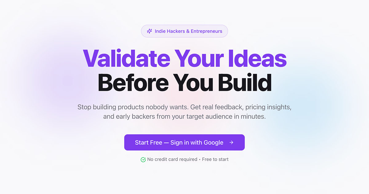 Stop building products that nobody wants. This platform helps you get real feedback, pricing insights, and find early backers from your target audience in minutes. You can test your assumptions early and ensure there is market demand for your concept before investing significant time and resources into development.