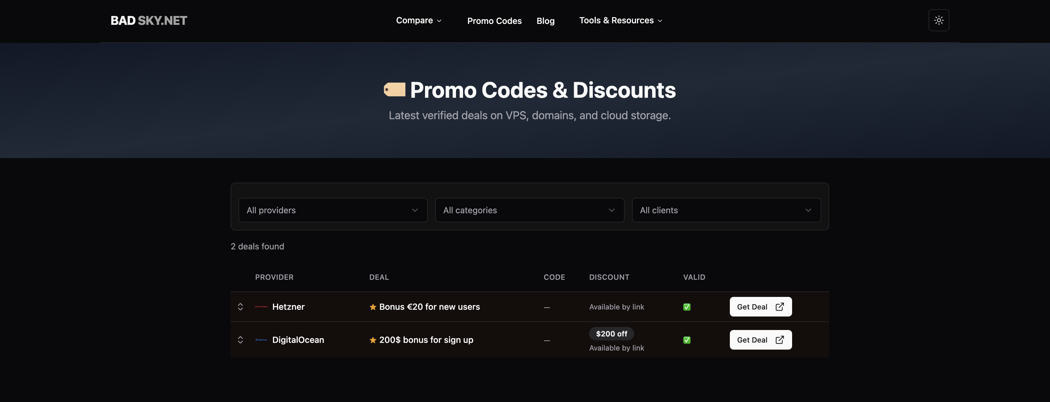 Browse and compare top VPS, domain, and S3 providers for free. Find high-value hosting deals for small businesses, developers, and indie hackers.