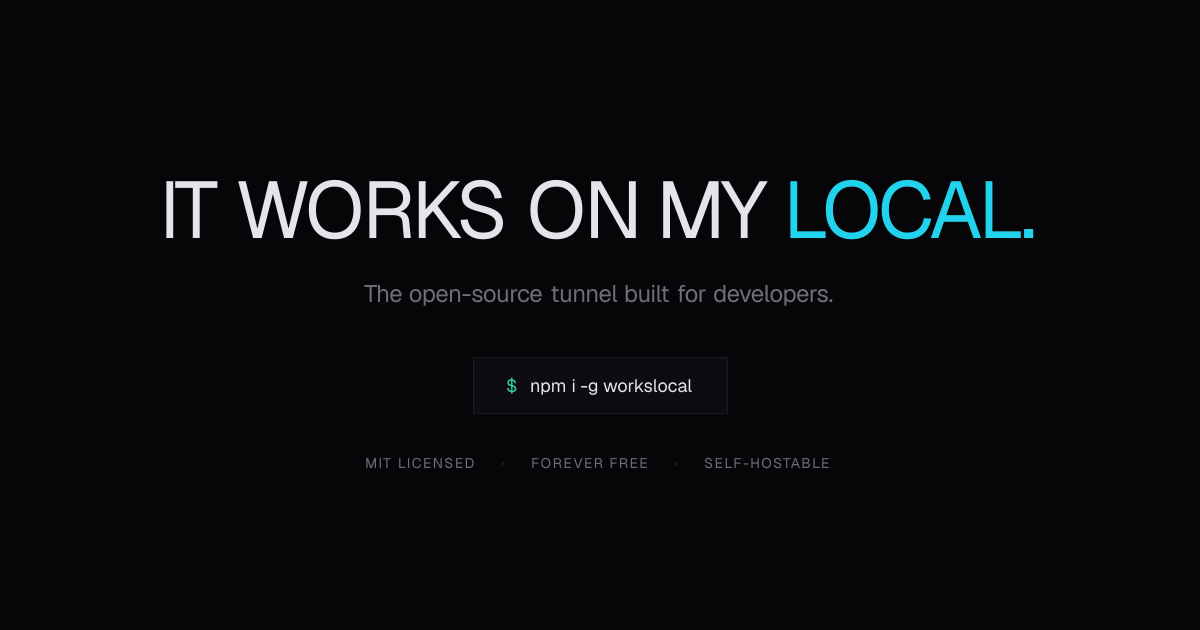 WorksLocal is a free, open-source alternative to ngrok that allows you to share your local development environment with the internet quickly. You can expose your localhost in seconds, making it ideal for testing webhooks and sharing progress with others. It features a built-in webhook inspector and a catch mode to help you monitor and debug incoming requests effectively. Being MIT licensed, it provides a forever free solution for developers who need reliable tunneling without the typical constraints of commercial services.